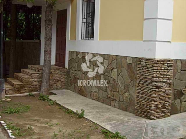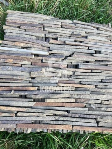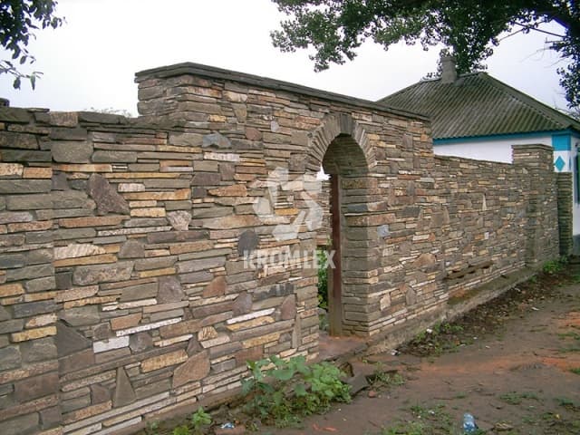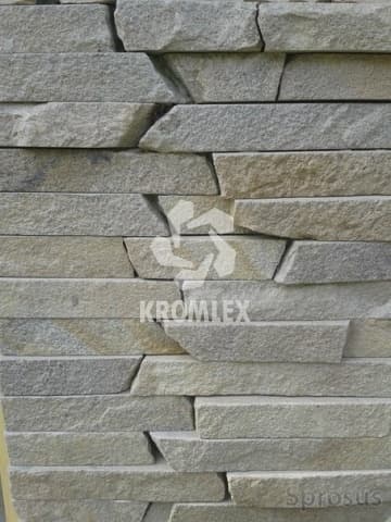 Полоска из серо-зеленого песчаника - один из самых популярных продуктов для отделки фасада дома или заборов