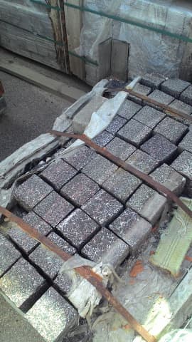 Гранитная брусчатка колотая Гранатовый Амфиболит КШК (камень штучный колотый)