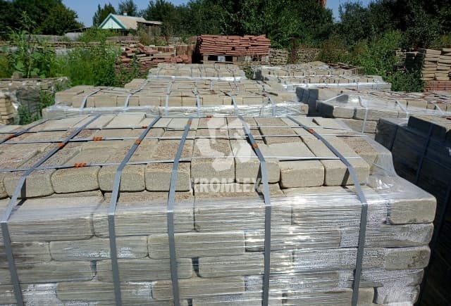 Песчаник серо-зеленый брусчатка галтованная 100х200 мм