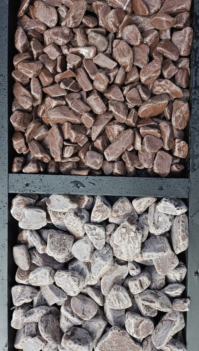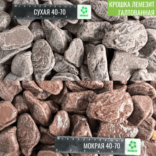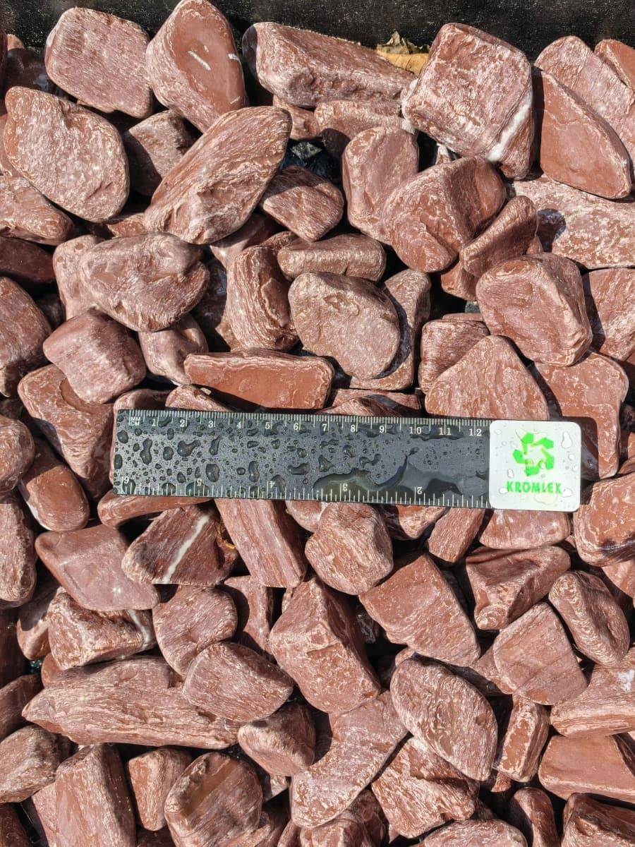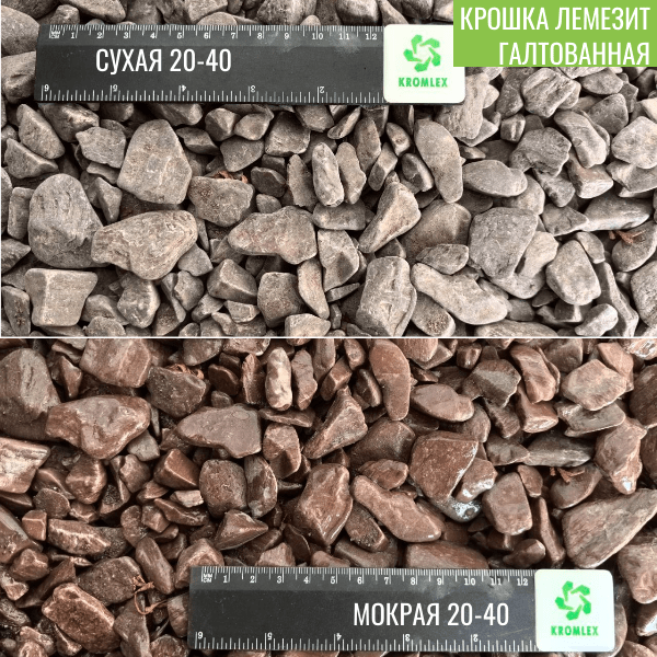 Лемезитовая крошка получается путем дробления камня лемезита. Имеет насыщенные цвета оттенков бордового, малинового, иногда ближе к коричневому. Последние годы крошка лемезита становится все более популярной при декорировании приусадебных участков, отсыпки дорожек, украшении клумб и рокариев.