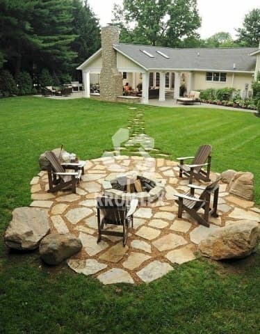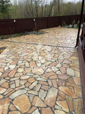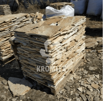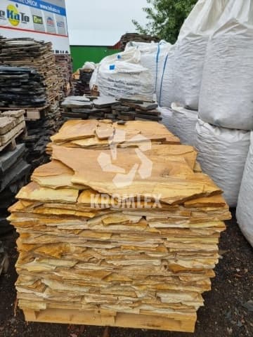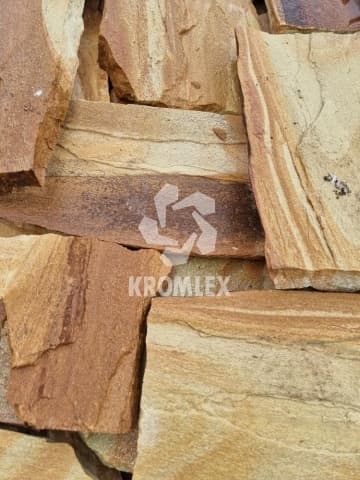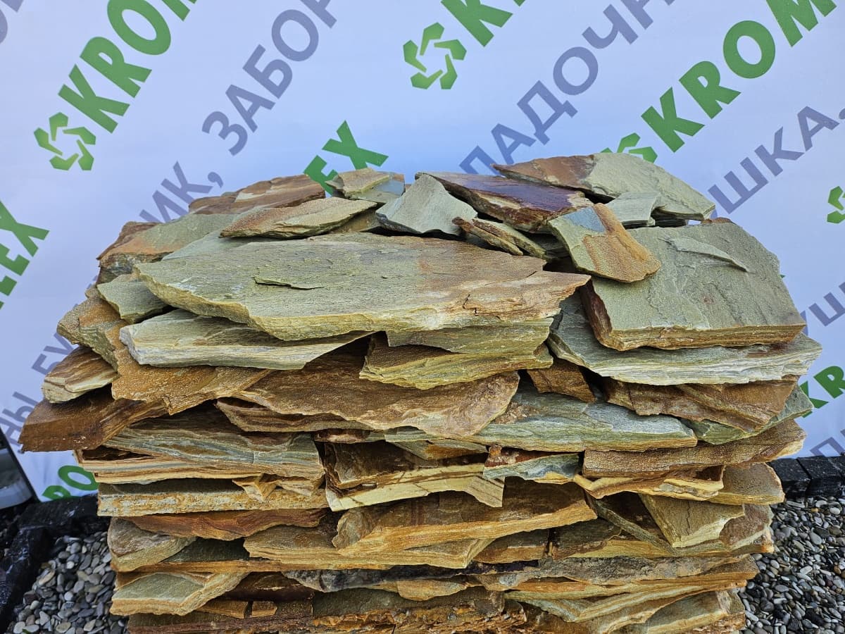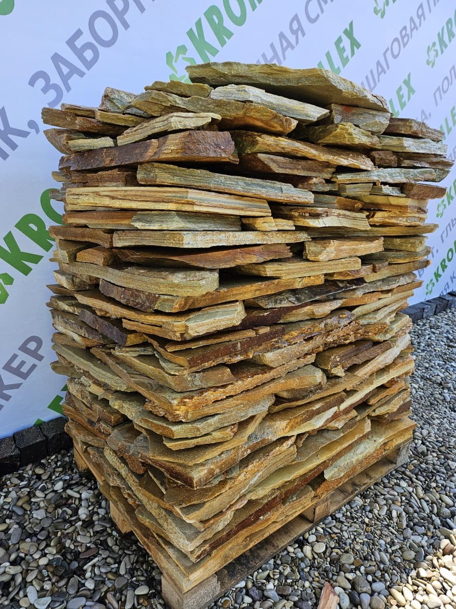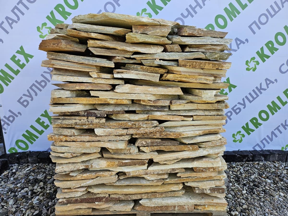 Грубые неотесанные формы - это как раз про желтый златолит, причудливые и неровные края смогут сделать неповторимый рисунок и впишутся в любой ландшафт, облицовку цоколя дома или облицовку фасада коттеджа.