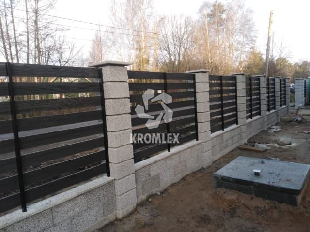 Межстолбовые (цокольные) заборные блоки устанавливаются между заборных столбов в 1 или 2 ряда, в пустота заливается бетонным раствором. Сверху на данную конструкцию можно приобрести двускатные козырьки из того же материала. Данные блоки можно использовать в ландшафтном дизайне.