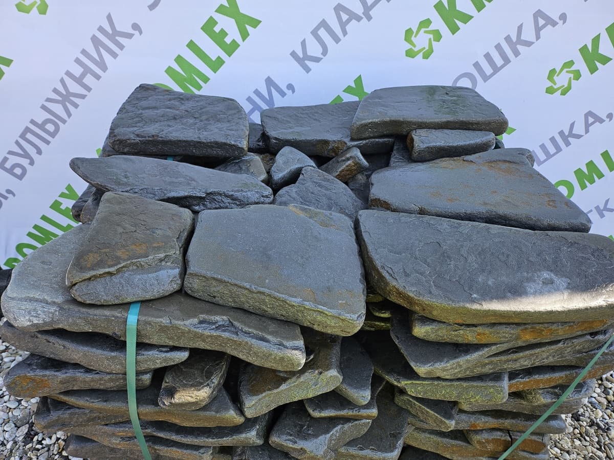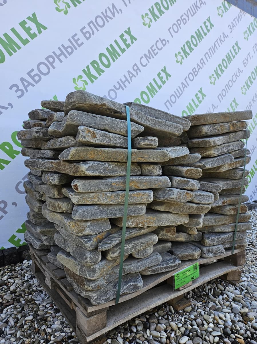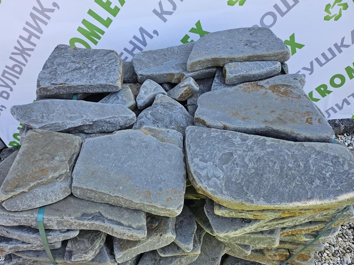 В компании «Кромлекс» предлагаем купить серо-голубой галтованный песчаник. Поставка в любом количестве от 1 кв. метра. Толщина до 10 см, диаметр до 5 дм. Доставим срочно или в удобное время по Санкт-Петербургу и пригородам. Есть самовывоз с Волго-Донского проспекта, 19, склад работает без выходных. Звоните: +7 (921) 389-06-06, менеджеры на связи с понедельника по пятницу 10:00-19:00.